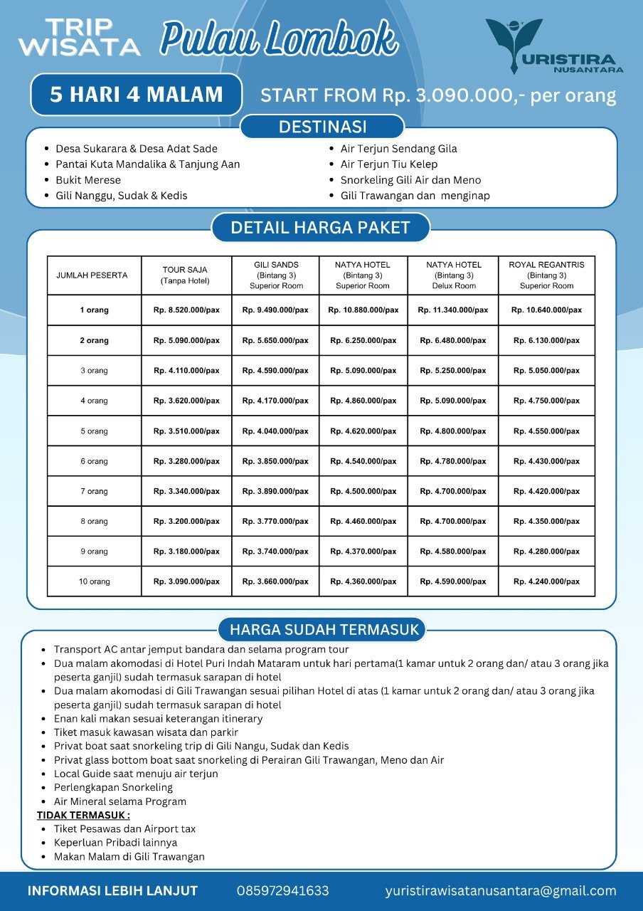 Pulau Lombok 5D4N (Yn1)